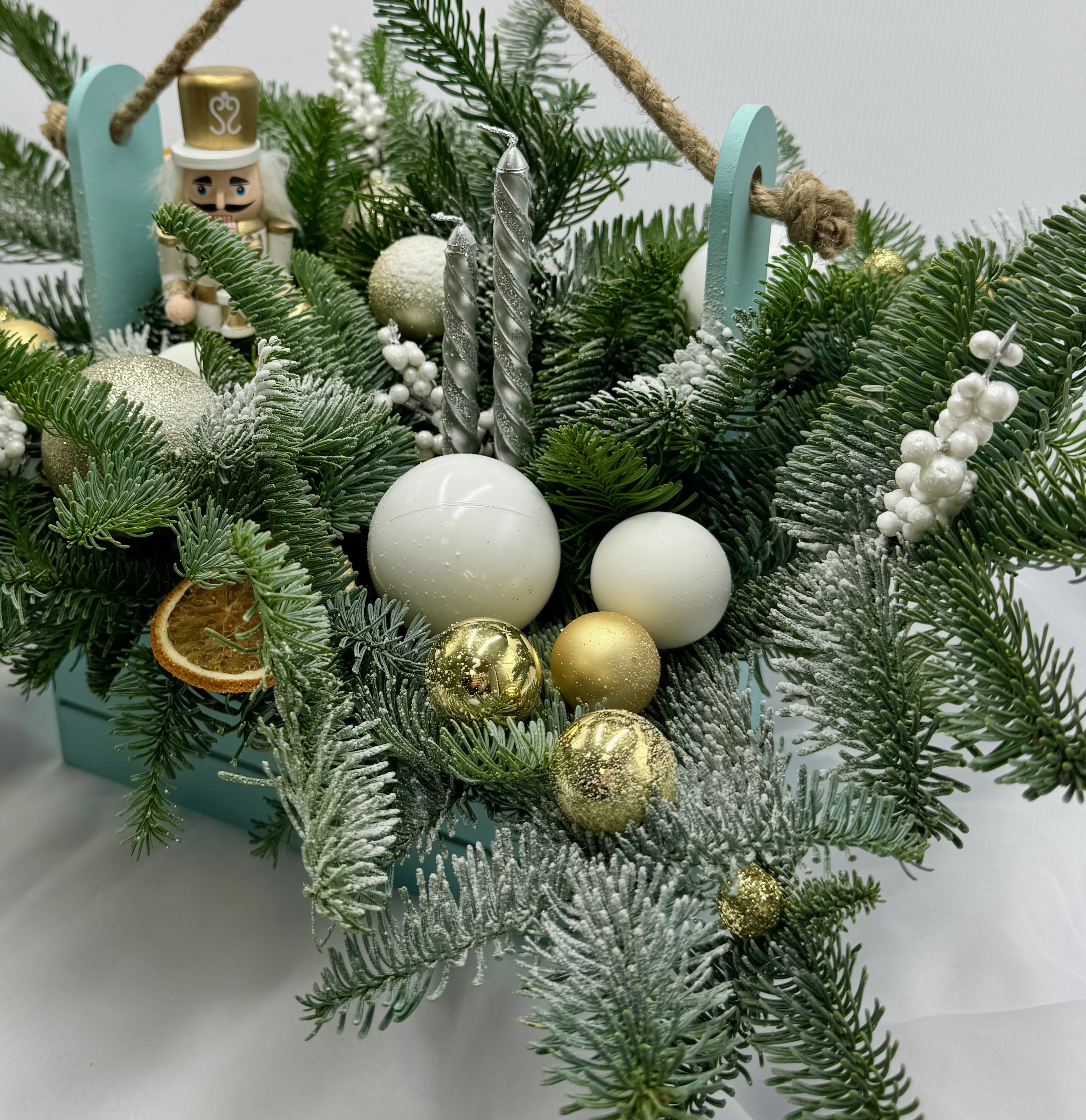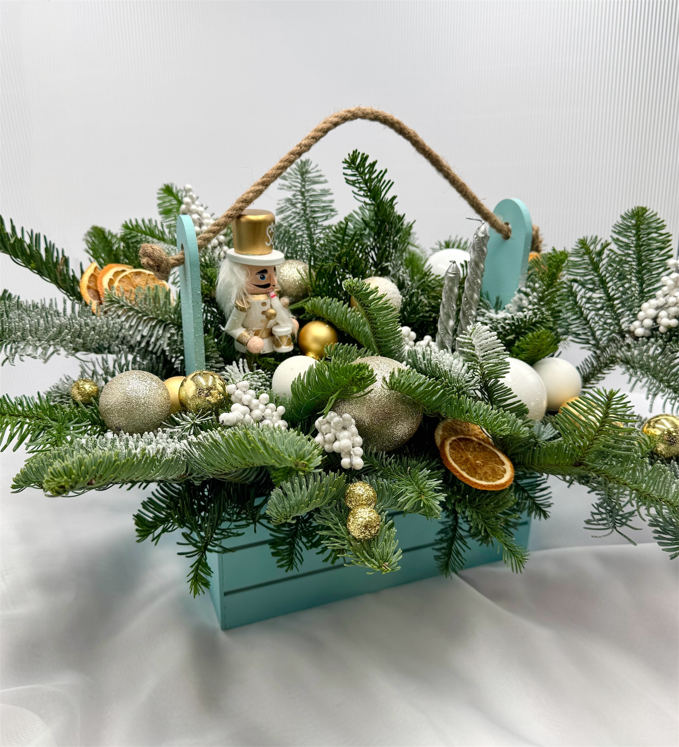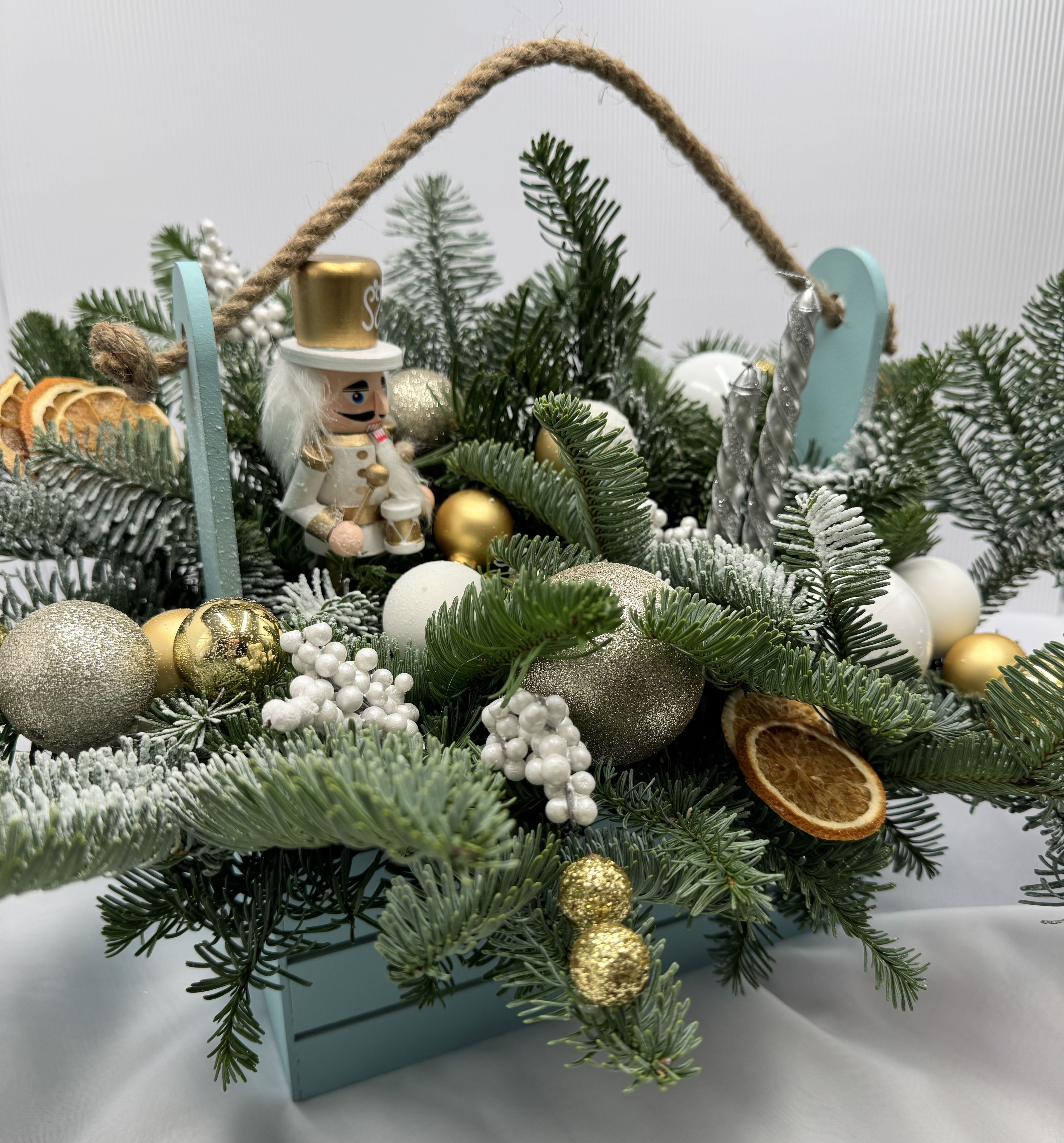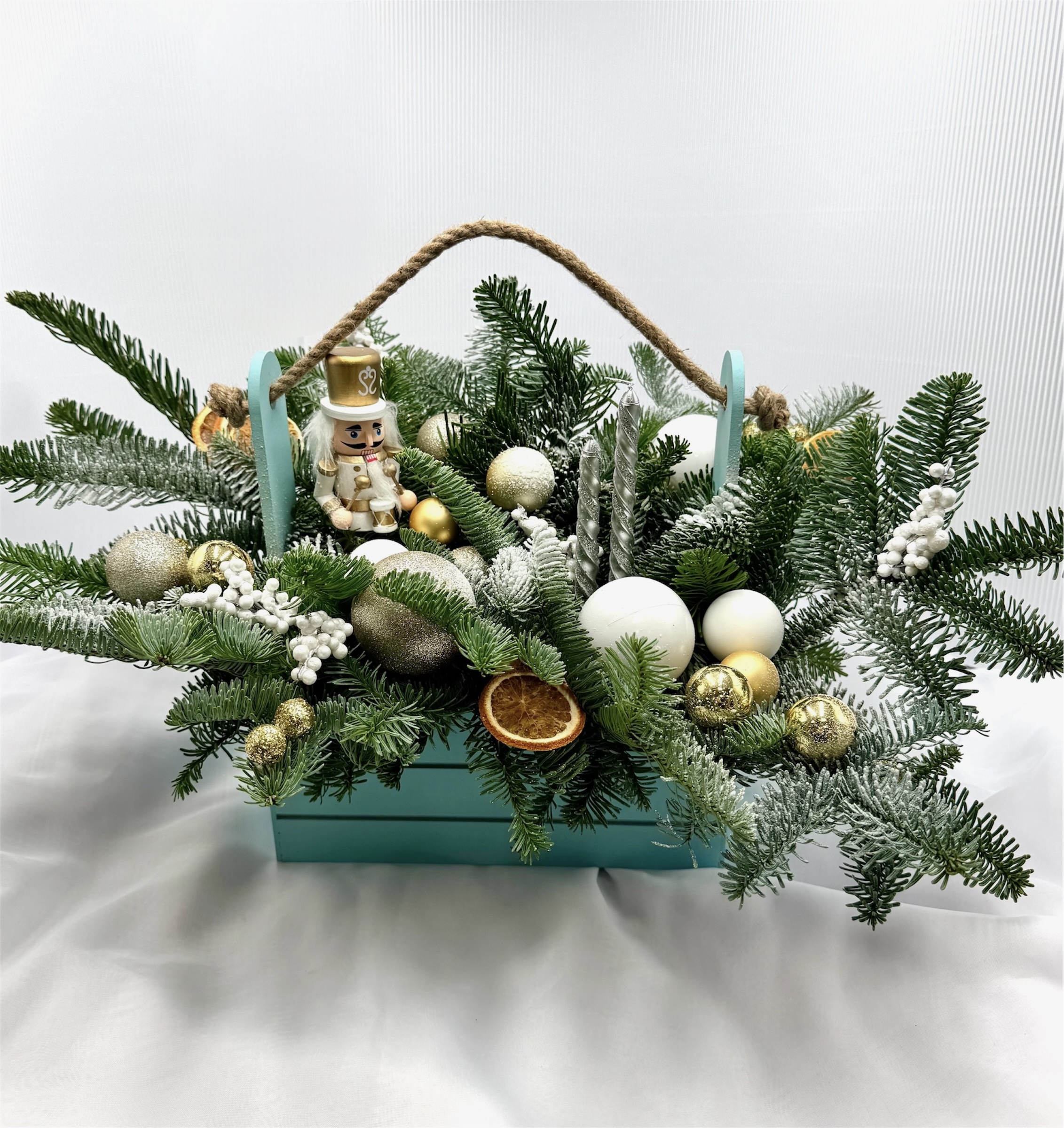 Веточки нобилиса, деревянный ящик, фигурка щелкунчика, транспортировочная упаковка, открытка (по желанию)