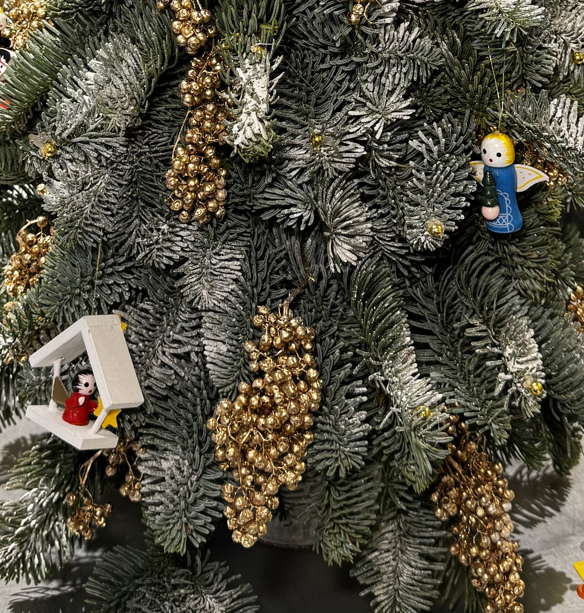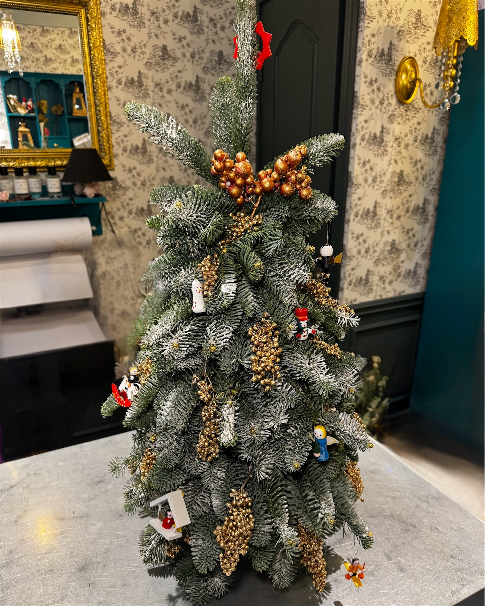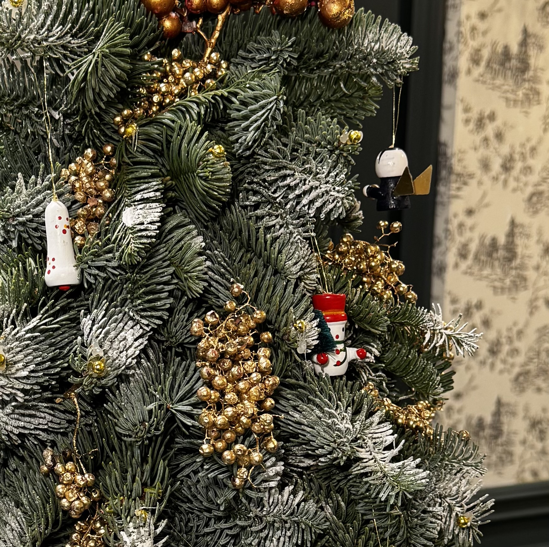 Очаровательная заснеженная ёлочка с декором в золотых оттенках✨
